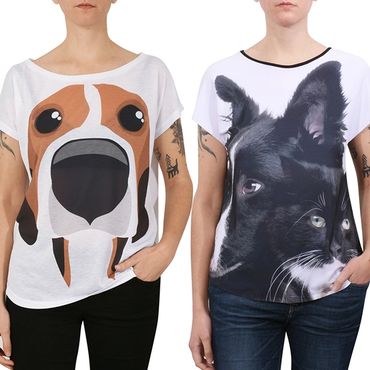 Estampamos em malhas e tecidos ou em sua peça pronta como camisetas, vestidos e banners de tecido